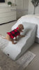 "Our dachshund used to jump on and off the bed constantly, and we were worried about his back. He took to these steps almost immediately. They’re sturdy, soft, and don’t slide around. Really happy with this purchase."